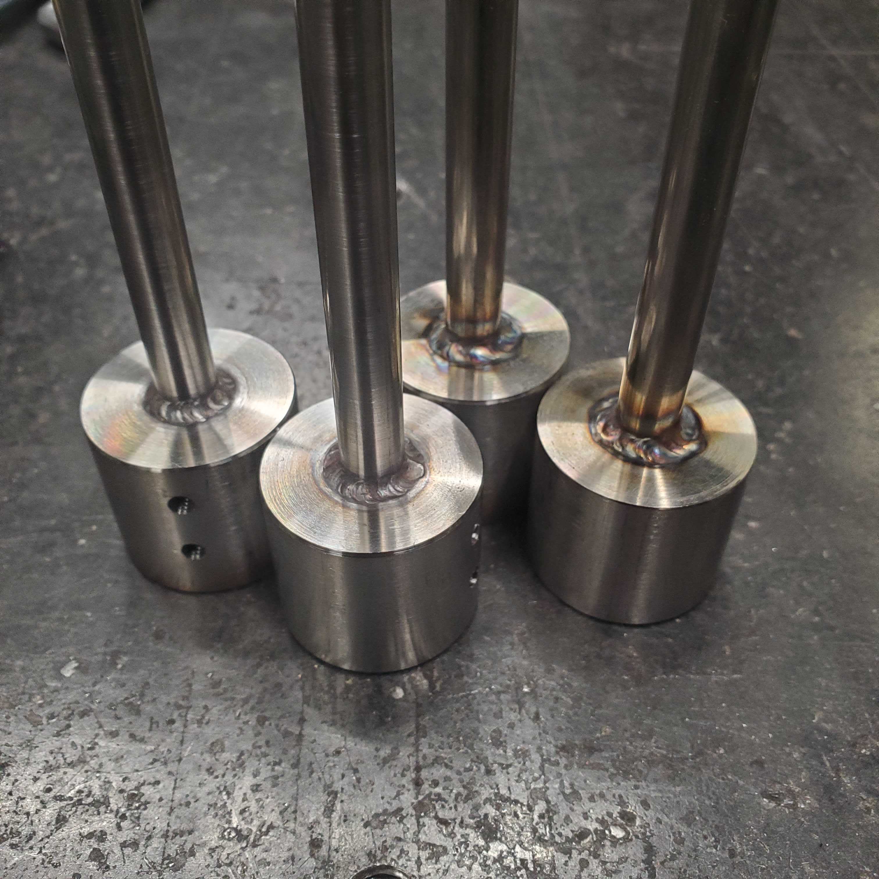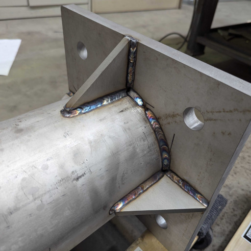 Large stainless tree trunk assembly, welded in shop and machined after welding. Part was machined after assembly, totaling 330lbs and 15 feet long. 3/4 stainless base plate welded to 6SCH40 stainless pipe.